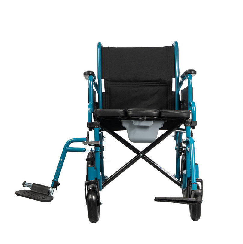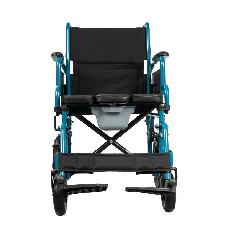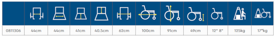 VÁZ Acél – összecsukható VÁZ Egyetlen keresztléc ÜLÉS PVC WC-vel – „U” alakú KARTÁMASZ Felhajtható LÁBTARTÓ Levehető, forgatható, elhajtható, állítható magasságú HÁTULSÓ KEREKEK 12" Tömör ELÜLSŐ KEREKEK 8" x 2" Tömör (200x50 mm)
