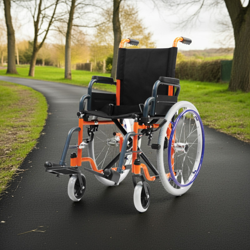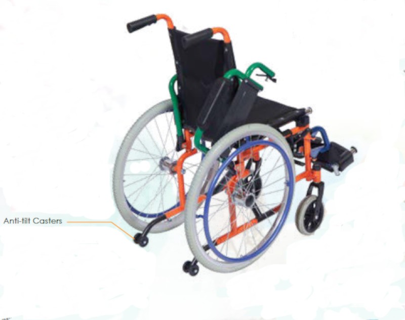 A „Rainbow” gyermek kerekesszék célzottan óvodás és kisiskolás gyermekeknek lett tervezve, akik mozgásukban korlátozottak. A konstrukció úgy készült, hogy a szállítás és a mindennapi mozgás támogatása a lehető legegyszerűbb legyen. A gyermek önállóan is képes irányítani a kerekesszéket - a kerekesszék 50–60 cm-es, kézi peremmel ellátott hátsó kerekekkel van szerelve - , de a kísérő fogantyúk segítségével könnyen irányíthatja azt.