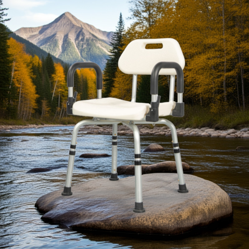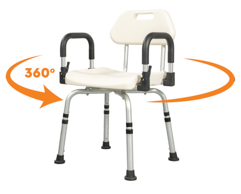 Forgatható fürdetőszék háttámlával, kartámaszzal
