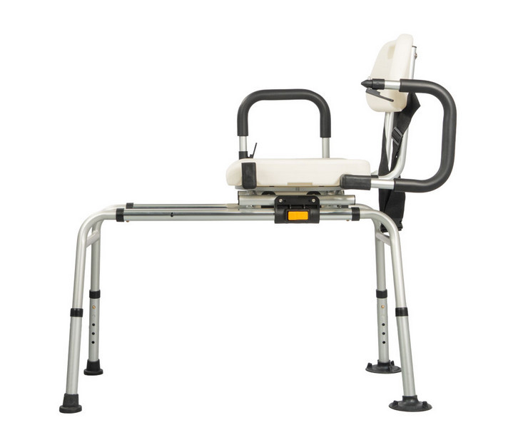 A gumitalpak stabil rögzítést adnak, így a használat közben nem kell a megcsúszástól tartani. Az állítható magasság a személyes igényekhez igazítható, az ülőfelület pedig mozgatható és forgatható, amely nagyban hozzájárul a be- és kiszállás egyszerűségéhez. A háttámla és az öv biztosítja a megfelelő támaszt, míg a karfák emelhetőek, így a felhasználó könnyebben tud helyet foglalni.