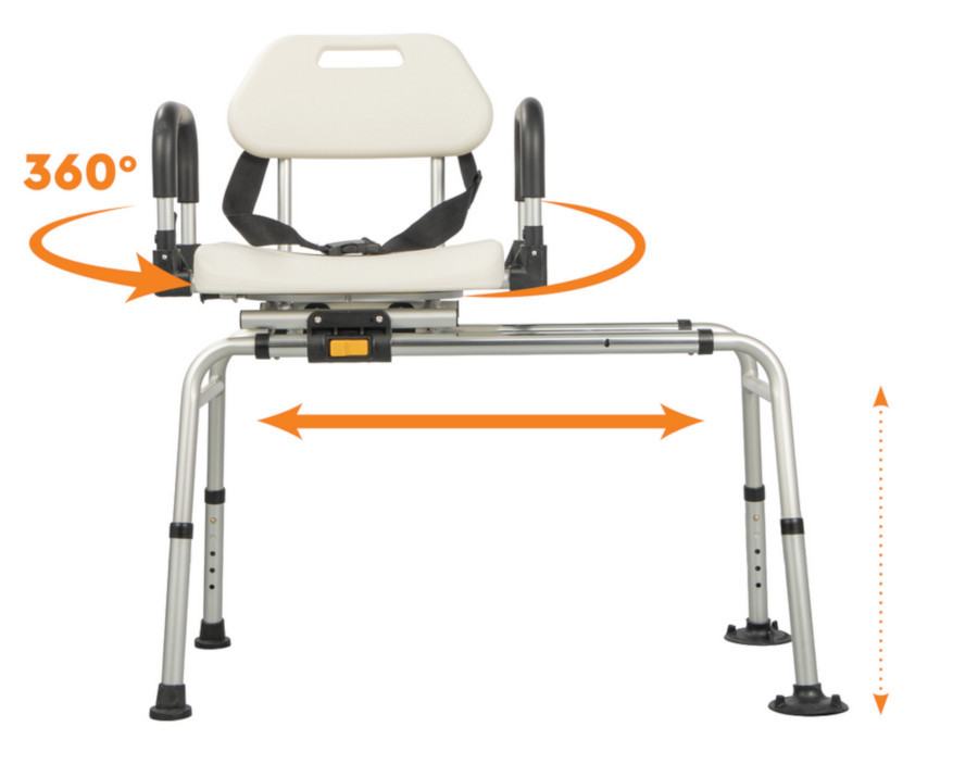 A zuhanyszék és transzfer pad kialakítása a mindennapos fürdés biztonságát és egyszerűségét helyezi előtérbe. Az eszköz megkönnyíti a felhasználó számára a kádba történő áthelyezést, csökkentve ezzel a baleseti kockázatot.