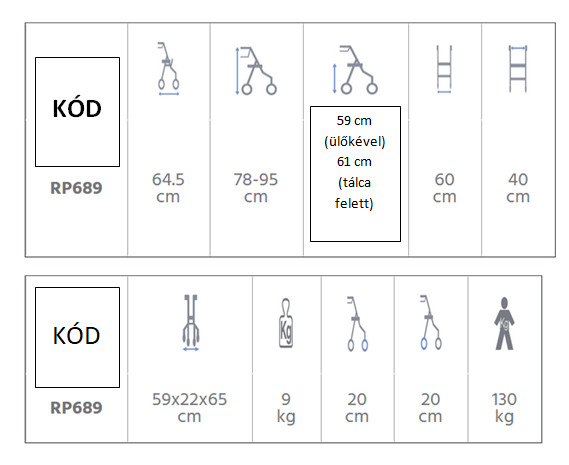 - Magassága: 59 cm (ülőkével), tálcával (61 cm)