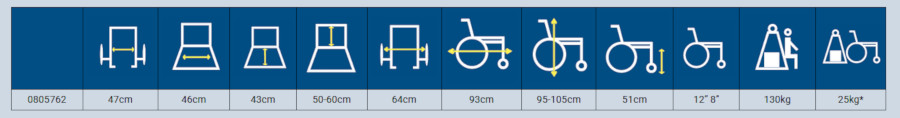 A vezérlő egység jobb és bal oldalra áthelyezhető, így a kezelési pozíció többféle elrendezésben használható. A borulásgátló görgők a mozgás közbeni pozíció megtartásához járulnak hozzá, a biztonsági öv a rögzítéshez kapcsolódik, a sárvédők pedig a kerék által felvert szennyeződés csökkentésére szolgálnak.