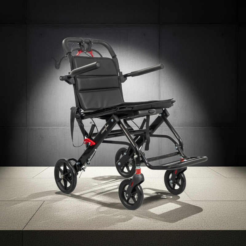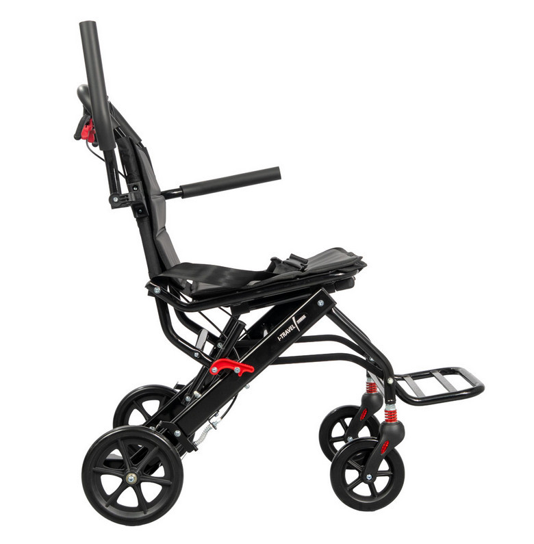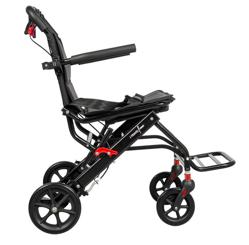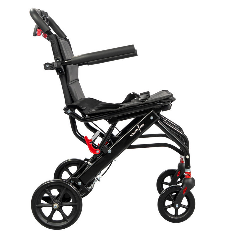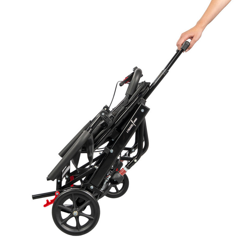 Az I-TRAVEL összecsukható transzferkerekesszék kezelő által irányítható, könnyen szállítható segédeszköz, amelyet kifejezetten a mobilitás megkönnyítésére terveztek. Alumínium váza egyszerű mozgatást biztosít, a biztonsági öv stabil rögzítést ad, az ergonomikus hordozófogantyú pedig a kezelhetőséget javítja.