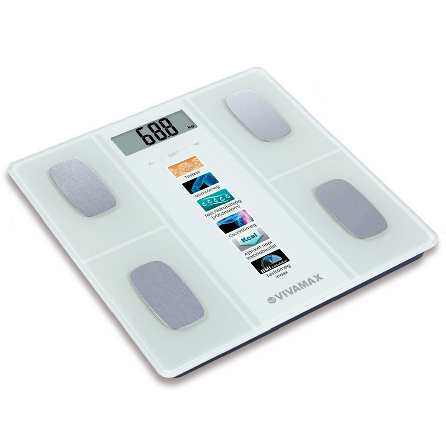 Ismerd meg az otthoni egészségügyi állapot-felmérés új dimenzióját a Vivamax Testösszetétel elemző mérleggel! Ez a kifinomult eszköz automatikusan azonosítja a felhasználót és akár 12 különböző felhasználó adatait is képes tárolni. Segítségével könnyedén nyomon követheted és kontrollálhatod tested zsír/hidratáció/izom/csont arányát, ami döntő hatással lehet az egészségi állapotodra és akár a fogyókúrád sikerére is! Az általános adatok (magasság, súly, kor, nem) felhasználásával végzett mérés meghatározza a napi ajánlott kalória bevitelt, és segít figyelemmel kísérni diétád hatékonyságát is.