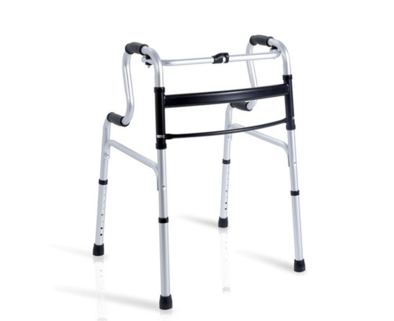 Összecsukható állítható magasságú felállást segítő járókeret négy fogantyúval
