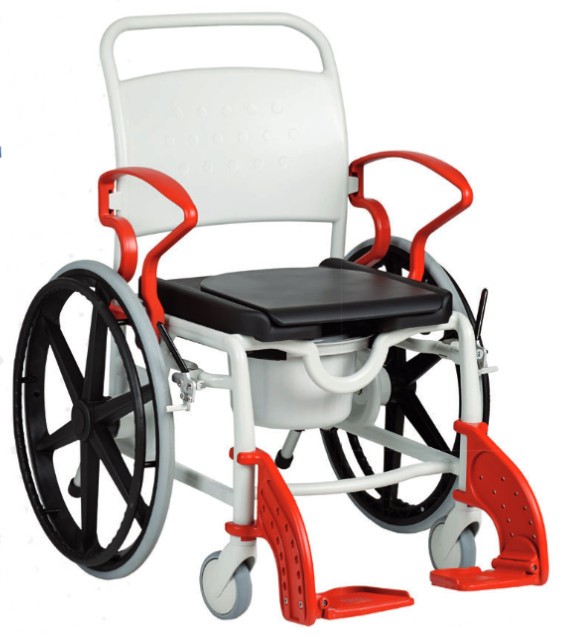 • Genf önhajtós nagy teherbírású gördíthető szoba wc zuhanyszék egyben 130 kg